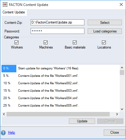 Click the "Select" button to select a content zip file with the update data. The file path is shown next to the button in the "Content-Zip" combobox.
