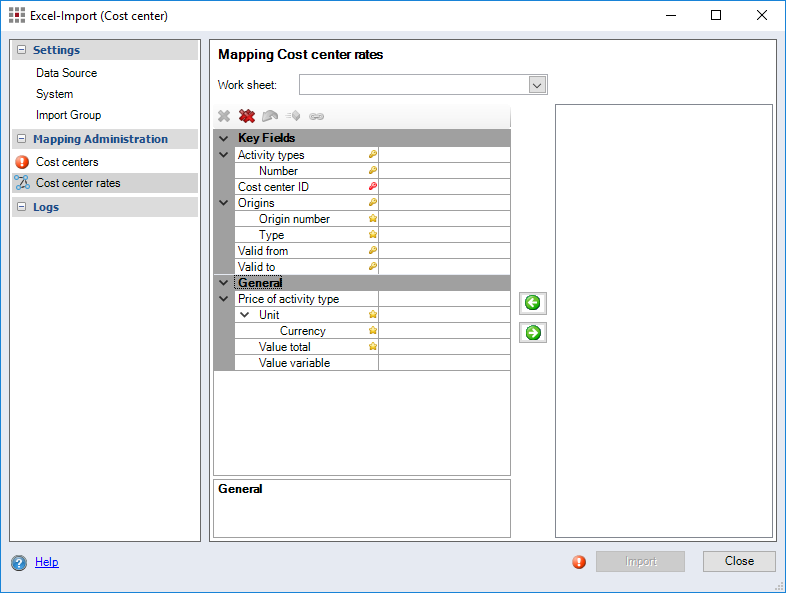 Figure: Excel Import (Cost Center) dialog, Mapping Cost Center Rates
