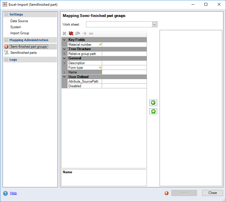 Figure: Excel Import (Semifinished Part) dialog, Mapping Semifinished Part Groups