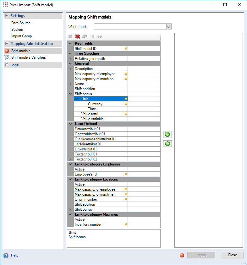 Figure: Excel Import (Shift Model) dialog, Mapping Shift Models