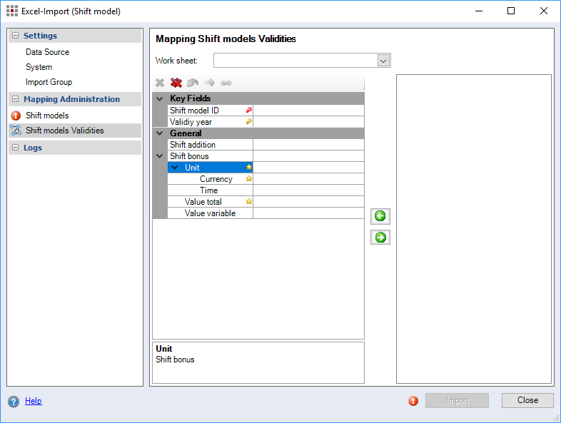Figure: Excel Import (Shift Model) dialog, Mapping Shift Models Validities