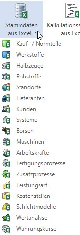 The Excel master data import is available for various master data categories.