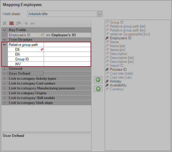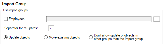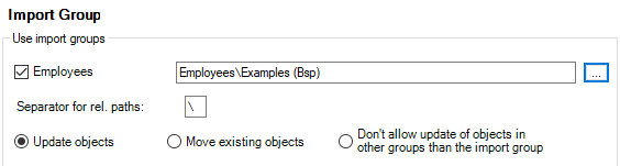 The following chapters show various possible combinations of import groups and relative paths using an example for Excel master data import for employees.