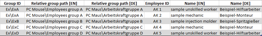 Example: Excel table for the Employee import