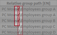 Figure: Excel table detail, Separator for relative group paths