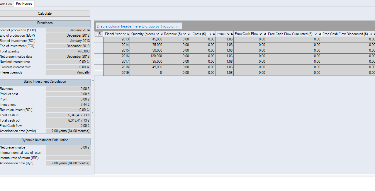 Enter the investment period in years (a) or months. The investment end date (EOI) is automatically set according to the entered duration. The application ensures that the investment period is longer or equal to the production period. |