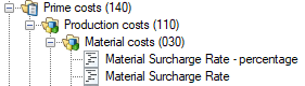 In the "Production costs" group, create the surcharge rate named "Material surcharge rate" of surcharge type "Definition" on "Direct material surcharge costs".