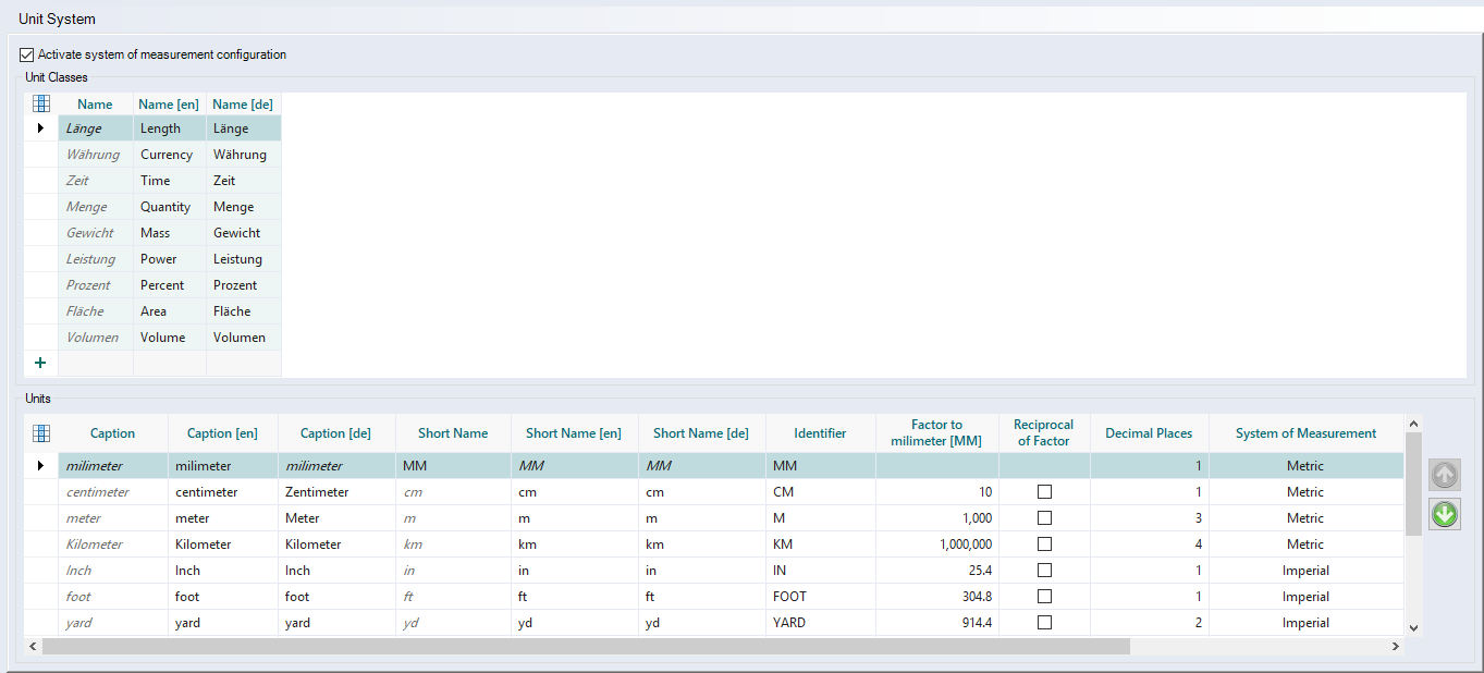 In addition to the unspecific unit system you can configure and use the imperial and metric unit system. The checkbox is deactivated by default. All units and unit classes are unspecific.