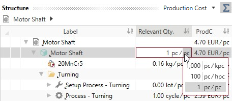 1 pc / pc means that 1 "Piece (pc)" should cost calculation requires 1 "Piece (pc)" "Motor Shaft".