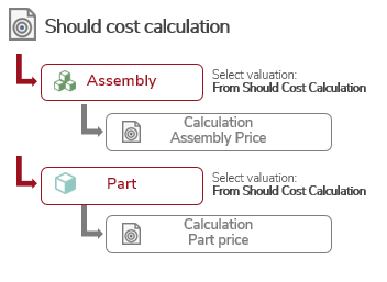 • You can use an existing calculation (e.g. from a colleague) in your should cost calculation to determine the costs of an assembly or a part.